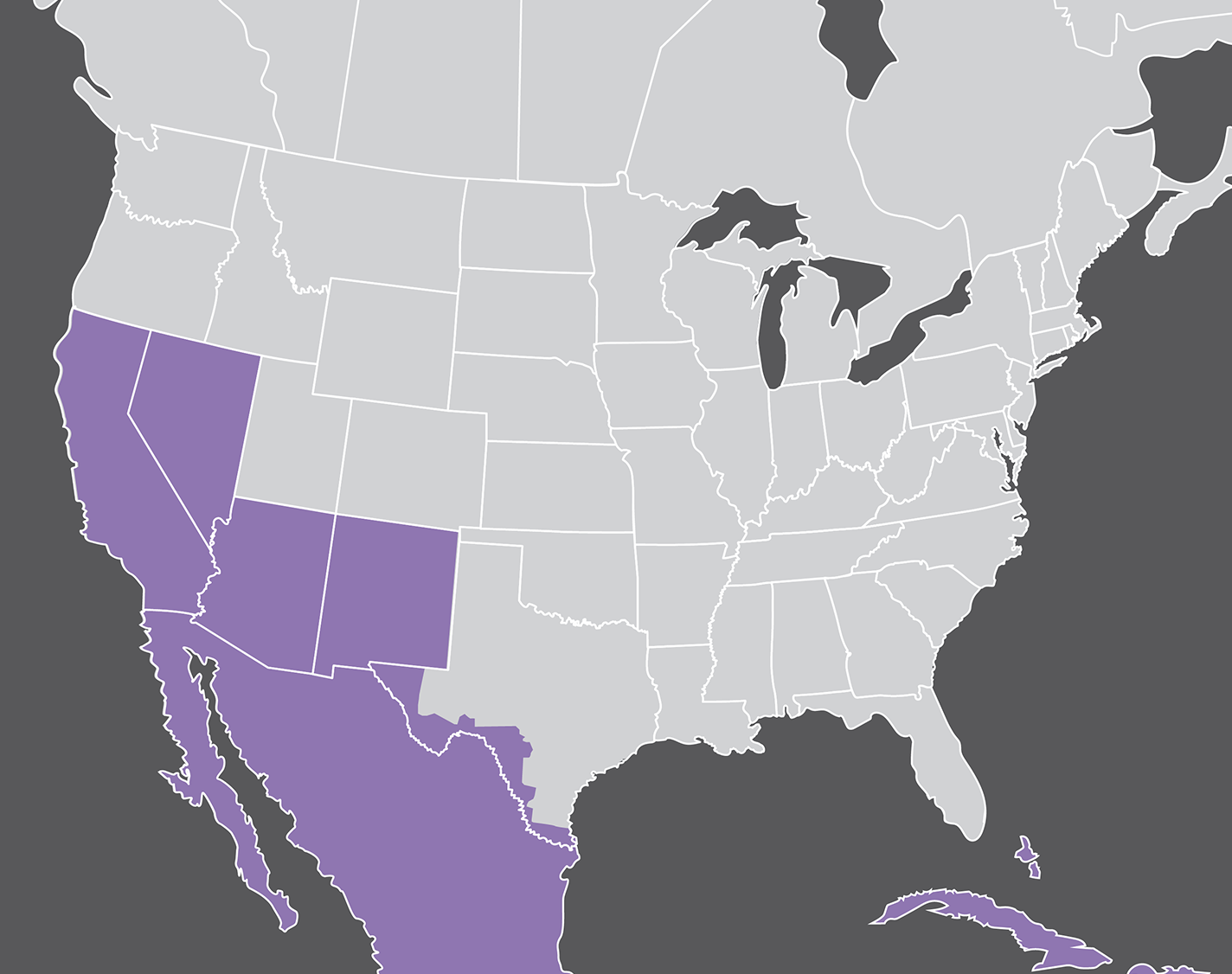 Serving the Southwestern States, Mexico, & the CaribbeanCoverage map