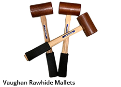 Both Garland and Vaughan rawhide mallets are tough and long-wearing. Garland mallets are constructed from the finest materials and are made in the USA. Vaughan mallets deliver firm blows and have proportionately longer handles.